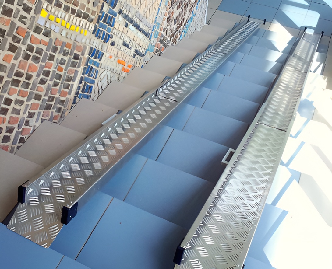Мобильные (переносные) пандусы для маломобильных групп населения обеспечивают возможность передвижения людей на инвалидных колясках (а также детских колясок).