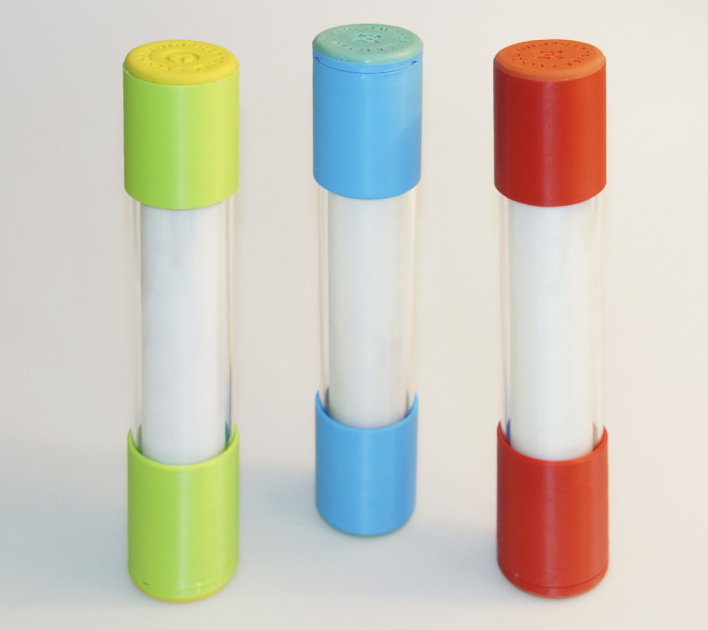 • Для того чтобы включить трубу, нужно на торцевой части (цветная заглушка) нажать на центральную часть, до характерного включения кнопки.