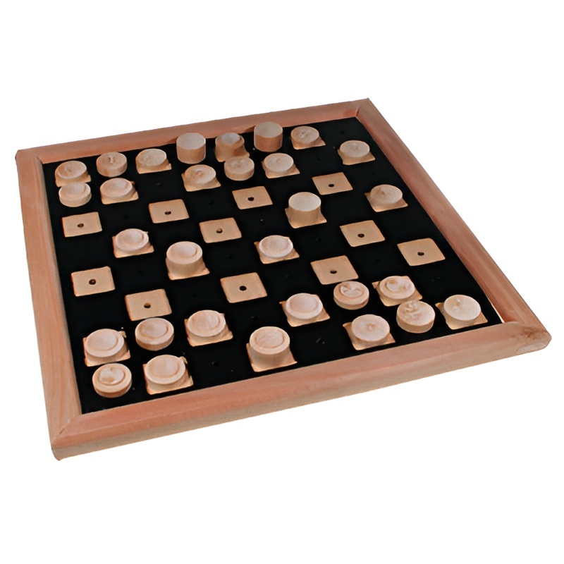 Доска имеет следующие особенности: во-первых, в середине каждого поля (клетки) доски есть отверстие для вставки фигур; во-вторых, чёрные поля чуть-чуть приподняты по сравнению с белыми полями, что облегчает ориентацию на доске, особенно по её линиям – вертикалям и горизонталям.
