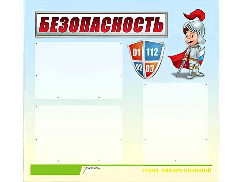 Стенд информационный для ДОУ "Безопасность" (75х70см, 3 карм., алюм. проф.) - fgospostavki.ru - Каменск-Уральский