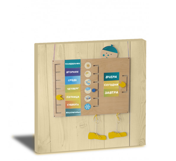 Дидактическая панель на тематику дней недели - это красивая игровая зона, выполненная из качественных материалов, которая не оставляет зацепок в детских ручках. Этот набор из разных дней недели, погодных условий и временных понятий. Слева идет перечисление дней, посередине изображены погодные условия, а справа - временные понятия: вчера, сегодня и завтра. У каждого столбика рядом есть траектория, по которой перемещается указатель. Формирование моторики улучшает речь у детей и способствует скорейшему ее развитию. Дидактическая панель Моя неделя заинтересует как маленьких детей, так и постарше, а родителям поможет сохранить дом в целости и сохранности. Она подойдет для домашнего использования и для специальных учреждений.