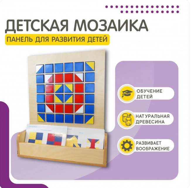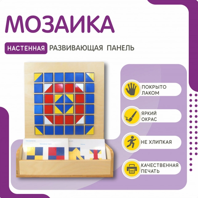 Настенная развивающая панель Мозаика является отличным выбором для учреждений, где проводятся занятия с детьми. Она поможет развить моторику, творческое мышление и воображение, а также учить детей распознавать и собирать цвета. Кроме того, панель может использоваться в качестве развлекательной игрушки в игровых комнатах и дома. Содержит все необходимые элементы для того, чтобы ребенок мог играть и творить одновременно. Кубики с разными цветами граней помогут ему развивать цветовое восприятие и творческое мышление, а схемы раскладки мозаики добавят интерактивности и заинтересуют ребенка.