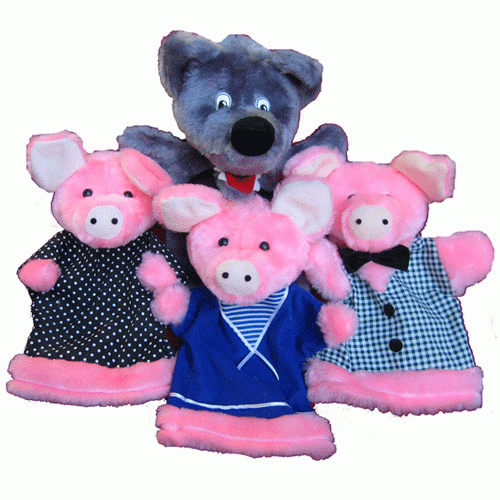 Набор состоит из 4 перчаточных кукол: Волк и три поросенка.