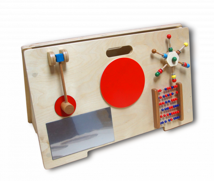 Тактильная панель двусторонняя - это красивая игровая зона, выполненная из качественных материалов, которая не оставляет зацепок в детских ручках. Она представляет собой набор предметов, в которые можно играть одновременно 1-2 детям. Много разных зон, которые с нетерпением хочется потрогать и покрутить. Здесь находится шестерёнки разноцветные, молоточек, счеты с подвижными шариками. А также мельница, на каждом ряду которой находится цветные кружки. Тактильная панель двусторонняя заинтересует как маленьких детей, так и постарше, а родителям поможет сохранить дом в целости и сохранности. Она подойдет для домашнего использования и для специальных учреждений.