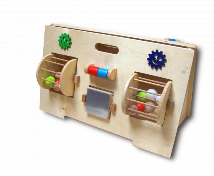Панель научит ребенка четко двигать и управлять руками, хватать и крутить предметы. Это развивает мелкую моторику и влияет благоприятно на центры речи. Деревянные шестеренки очень удобны для маленьких пальчиков детей, благодаря им малыш лёгким прикосновением приводит весь ряд в движение. Ребенок сможет научиться крутить колесо и почувствует работу механизма. Это территория вашего ребёнка, на которой он может спокойно крутить и трогать предметы.