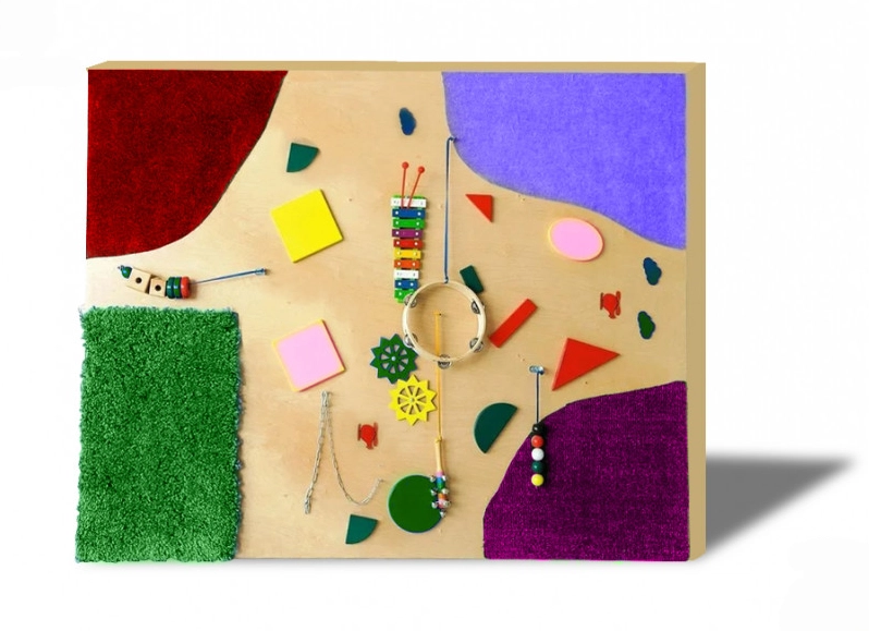 Тактильная панель с музыкальными инструментами - это не просто разные поверхности, а еще и целый мир различных инструментов. Здесь есть: ксилофон, бубенцы и маракасы. По краям находится тактильная зона. В середине - геометрические фигуры, и подвижные предметы на проволоке, их можно двигать из стороны в сторону. Тактильная панель с музыкальными инструментами заинтересует как маленьких детей, так и постарше, а родителям поможет сохранить дом в целости и сохранности.